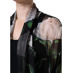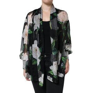 Dolce & Gabbana Black Floral Print Silk Cardigan Blouse Top