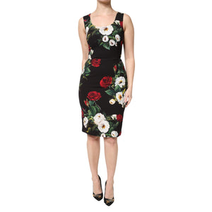 Dolce & Gabbana Black Floral Print Sleeveless Sheath Dress