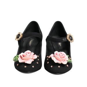 Dolce & Gabbana Black Flower Crystal Embellished Mary Jane Shoes