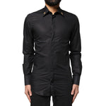 Dolce & Gabbana Black GOLD Cross Embellished Men Dress Shirt