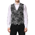 Dolce & Gabbana Black Gray Brocade Formal Men Waistcoat Vest