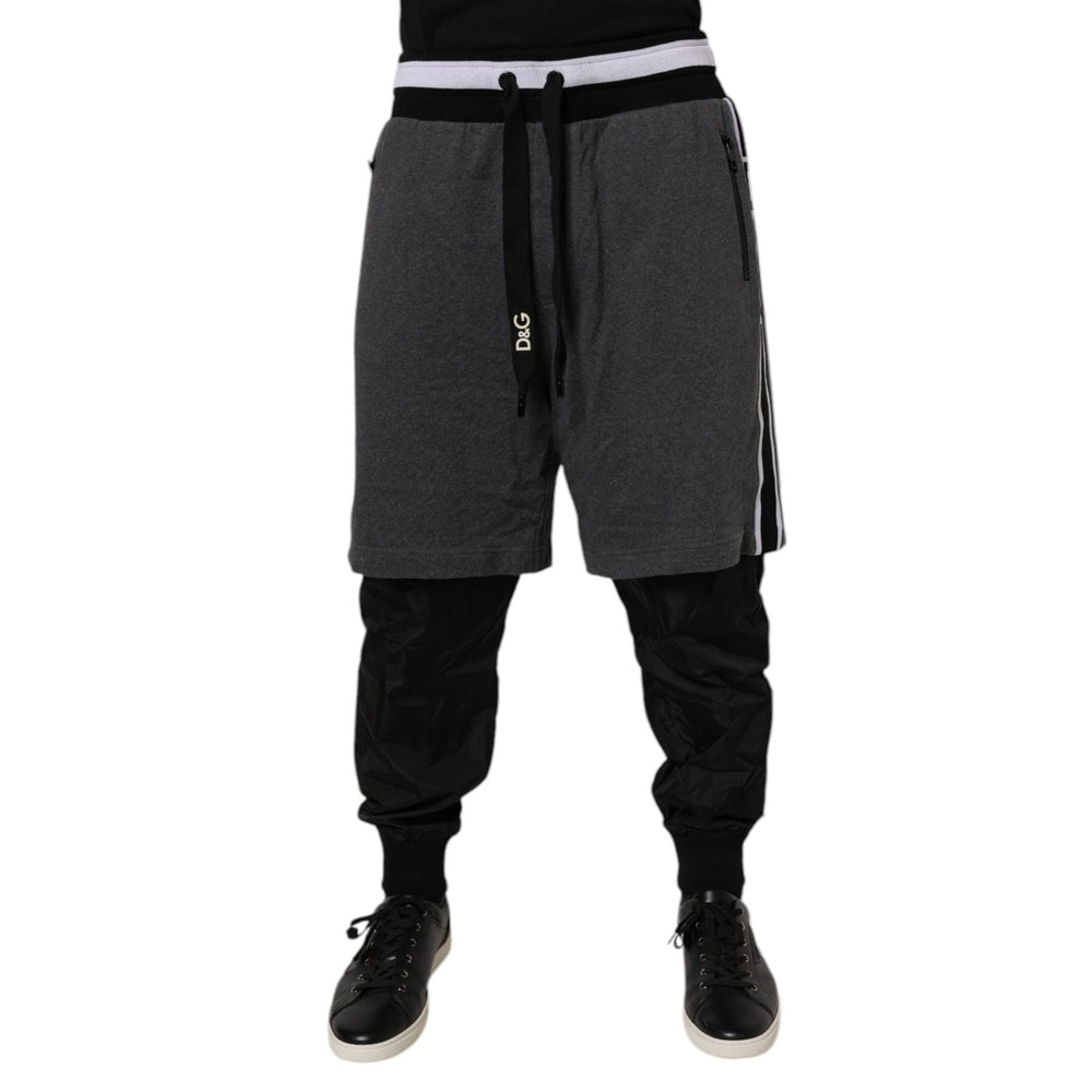 Dolce & Gabbana Black Gray Cotton Layered Men Sweatpants Pants