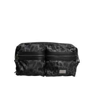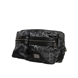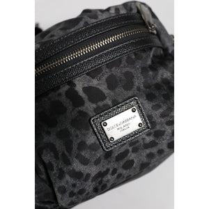 Dolce & Gabbana Black Gray Leopard DG Logo Belt Waist Fanny Pack Bag
