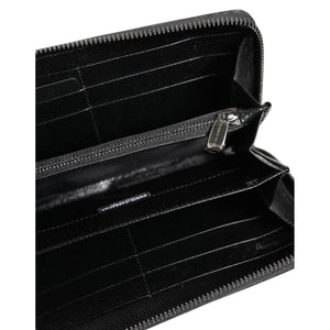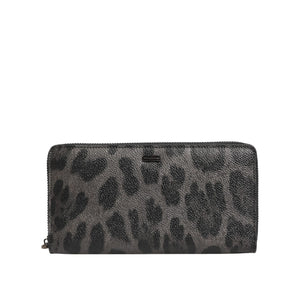 Dolce & Gabbana Black Gray Leopard Leather Zip Around Continental Wallet