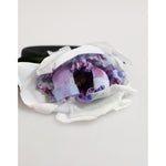 Color: Multicolor Black / Green base with Purple & White floral appliqué