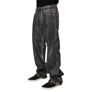 Dolce & Gabbana Black Grey Graphic Print Denim Pants Jeans