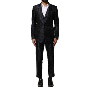 Dolce & Gabbana Black Jacquard 3 Piece Single Breasted Suit