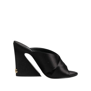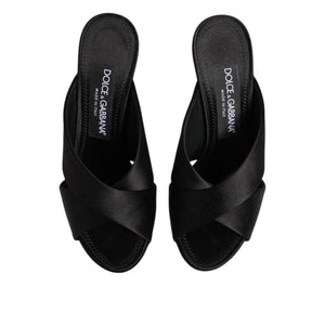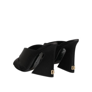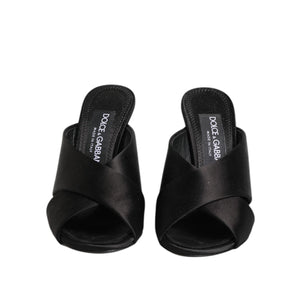Gorgeous brand new, 100% Authentic DOLCE & GABBANA sandals slip-on style with an open toe and a high heel feature a black satin construction with crossover panels and a distinctive geometrical heel.