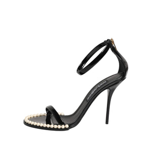 Dolce & Gabbana Black KEIRA Pearl Embellished Sandals Shoes