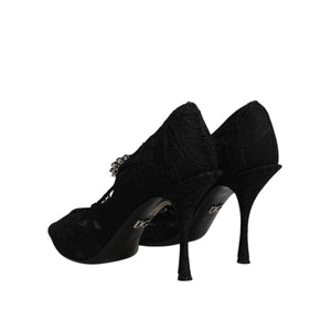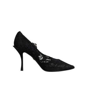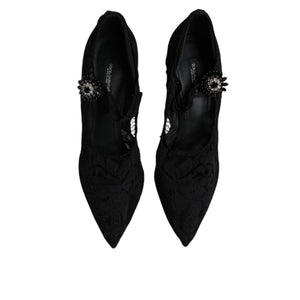 Dolce & Gabbana Black Lace Crystals Mary Jane Pumps Shoes