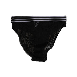 Dolce & Gabbana Black Lace Slip Brief Logo Waistband Underwear