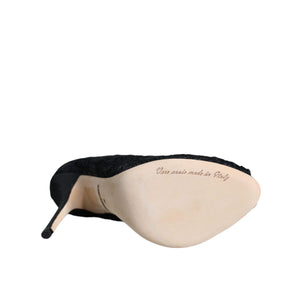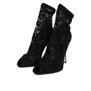 Dolce & Gabbana Black Lace Stretch Heels Mid Calf Boot Shoes