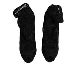 Dolce & Gabbana Black Lace Stretch Heels Mid Calf Boots Shoes