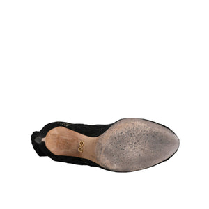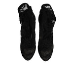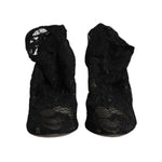 Dolce & Gabbana Black Lace Stretch Heels Mid Calf Boots Shoes