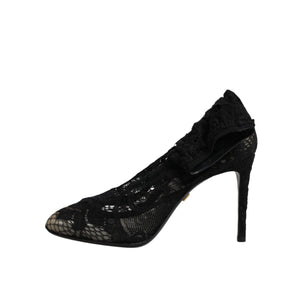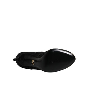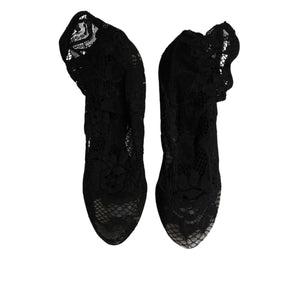 Dolce & Gabbana Black Lace Stretch Heels Mid Calf Boots Shoes
