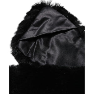 Dolce & Gabbana Black Lamb Fur Collar Women Neck Wrap Scarf