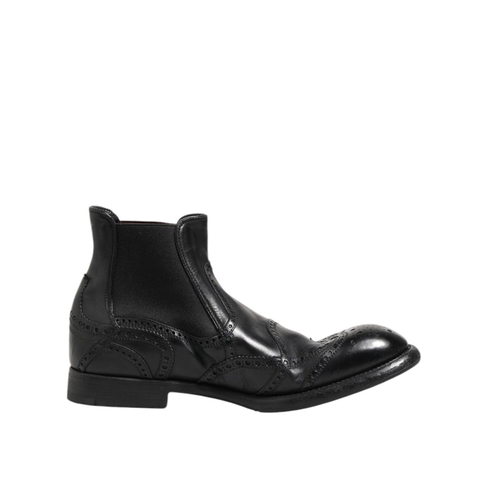 Dolce & Gabbana Black Leather Ankle Boots Slip On Shoes