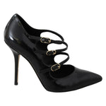 Dolce & Gabbana Black Leather Ankle Strap Heels Pumps Shoes