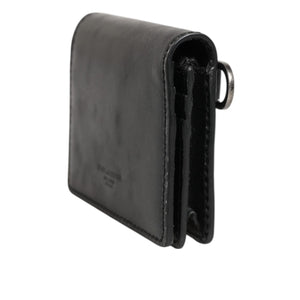 Dolce & Gabbana Black Leather Bifold Card Holder Mens Coin Purse Key Clip Wallet