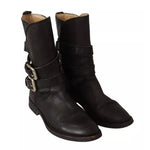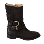 Dolce & Gabbana Black Leather Buckle Mid Calf Boots Shoes