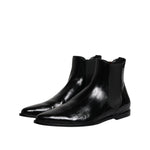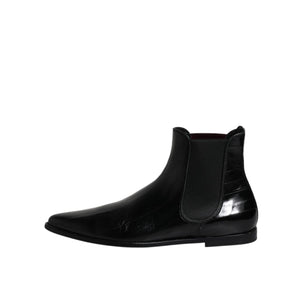 Dolce & Gabbana Black Leather Chelsea Men Ankle Boots Shoes