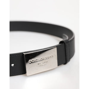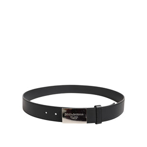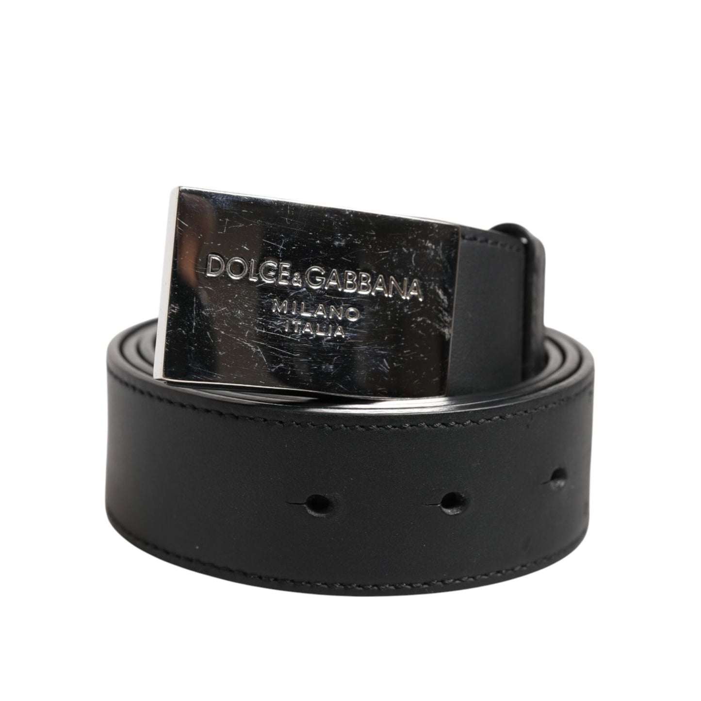 Dolce & Gabbana Black Leather Classic Metal Logo Buckle Belt