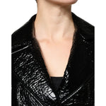 Dolce & Gabbana Black Leather Cropped Long Sleeve Coat Jacket