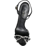 Dolce & Gabbana Black Leather Crystal Bow Heels Sandals Shoes