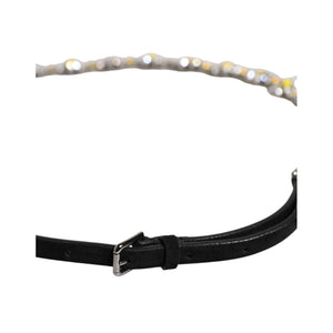 Dolce & Gabbana Black Leather Daisy Crystal Embellish Waist Belt