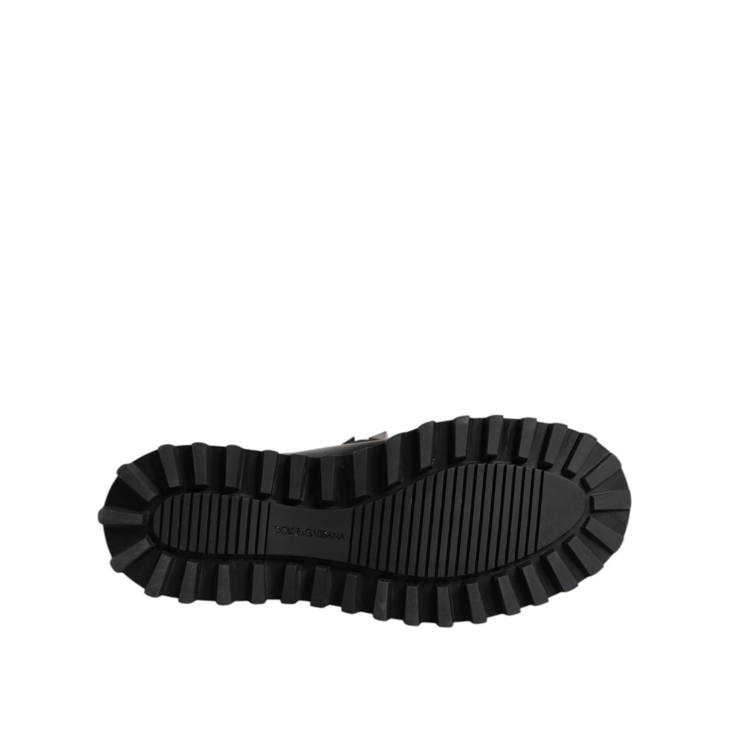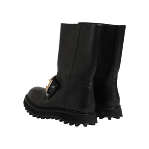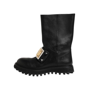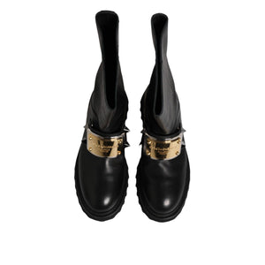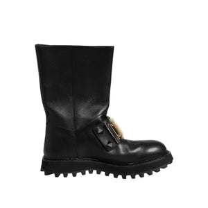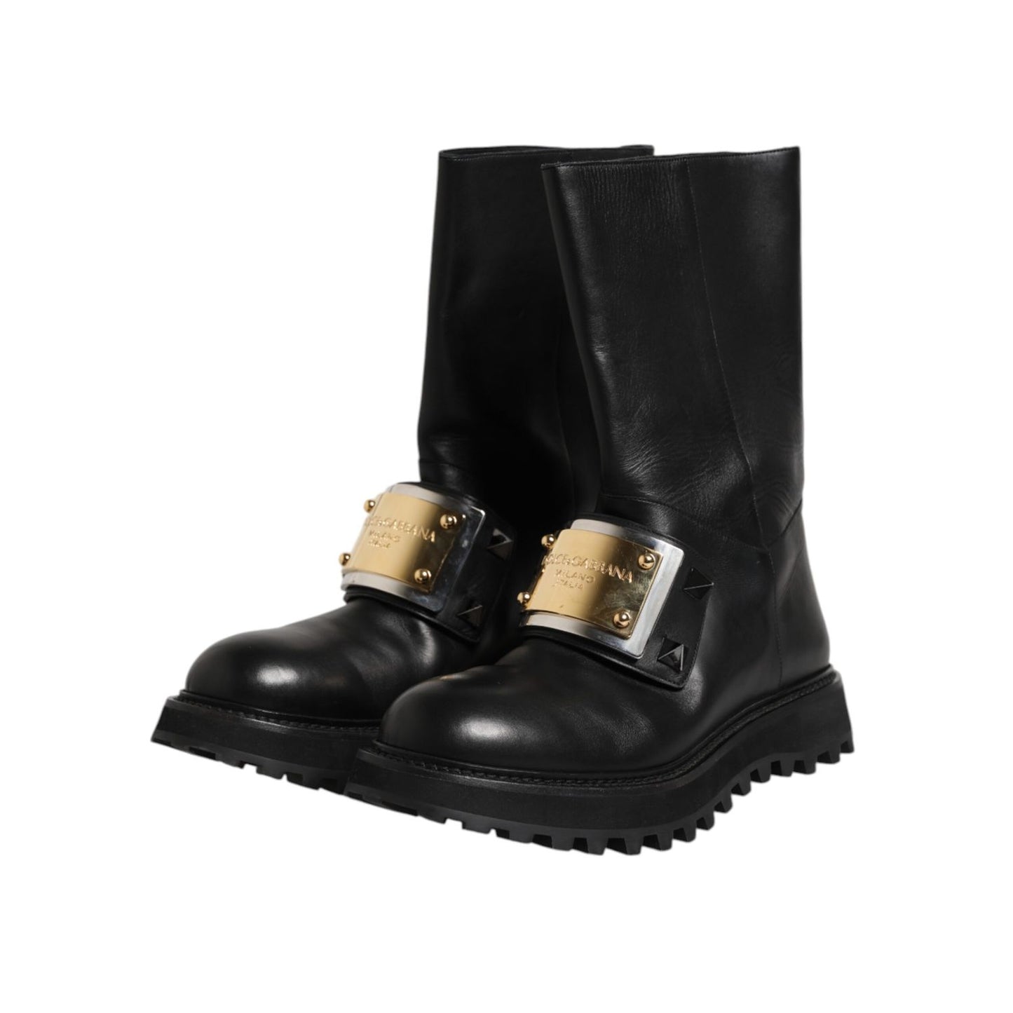 Dolce & Gabbana Black Leather DG Logo Plaque High Boots Shoes