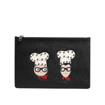 Dolce & Gabbana Black Leather #DGFAMILY Embellished Men Clutch Pouch Bag