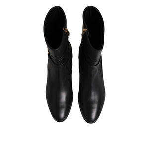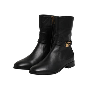 Dolce & Gabbana Black Leather Flats Logo Short Boots Shoes