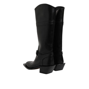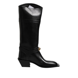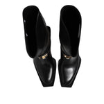 Dolce & Gabbana Black Leather High Boots Flats Shoes
