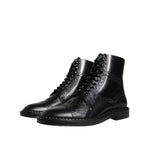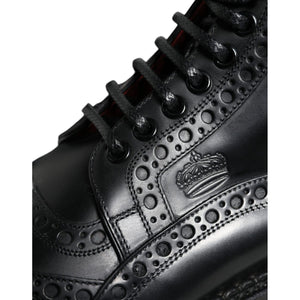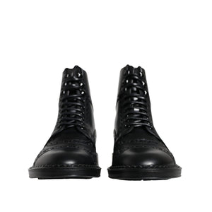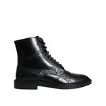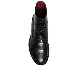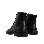 Dolce & Gabbana Black Leather Lace Up Mid Calf Boots Shoes