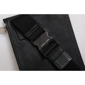 Dolce & Gabbana Black Leather Logo Embossed Waist Fanny Pack Bag