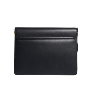 Dolce & Gabbana Black Leather Logo Gold Crossbody Purse Bag