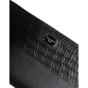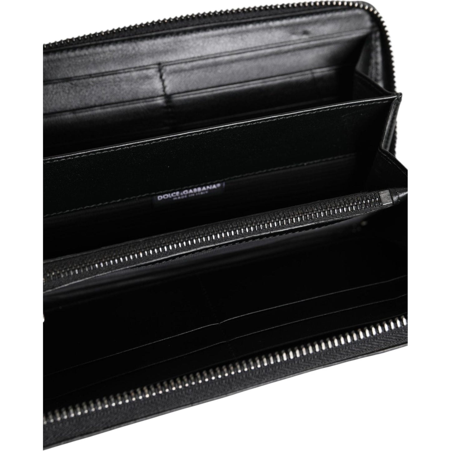 Dolce & Gabbana Black Leather Logo Plaque Zip Around Continental Wallet