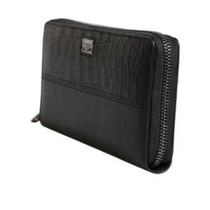 Dolce & Gabbana Black Leather Logo Plaque Zip Around Continental Wallet