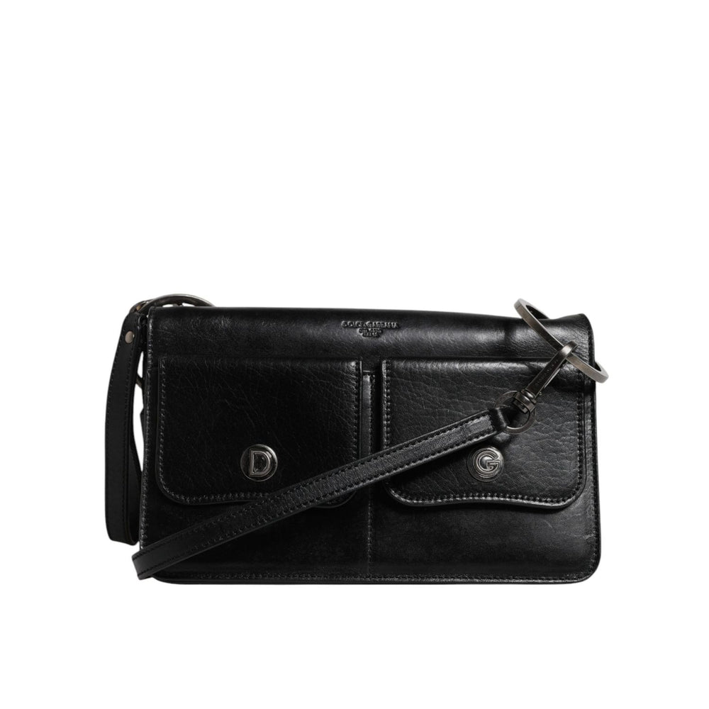 Dolce & Gabbana Black Leather Logo Purse Shoulder Crossbody Bag