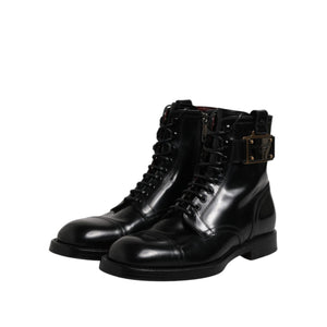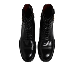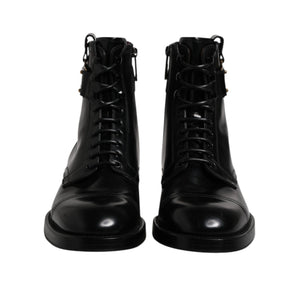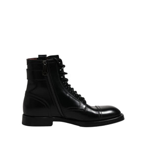 Dolce & Gabbana Black Leather Mid Calf Boots Lace Up Shoes