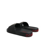 Dolce & Gabbana Black Leather Slides Sandals Beachwear Shoes