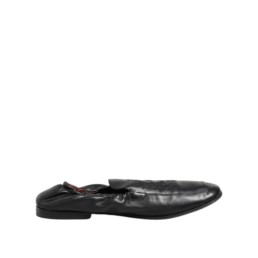 Dolce & Gabbana Black Leather Slip On Men Flat Loafers Shoes