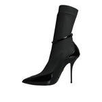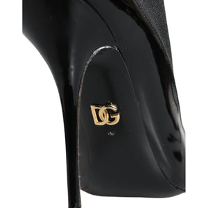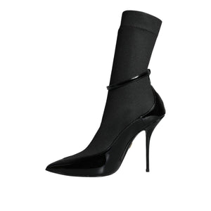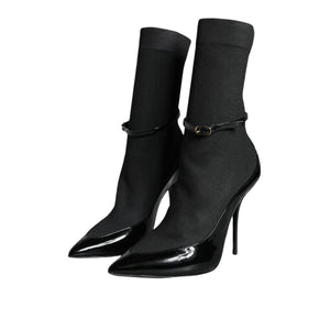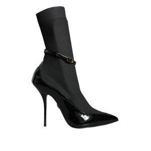 Dolce & Gabbana Black Leather Stilettos Booties Socks Shoes