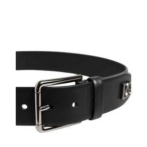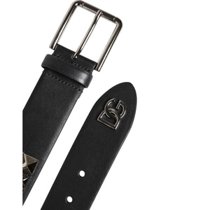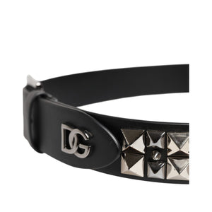 Dolce & Gabbana Black Leather Studded DG Metal Buckle Belt