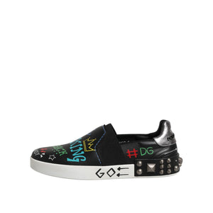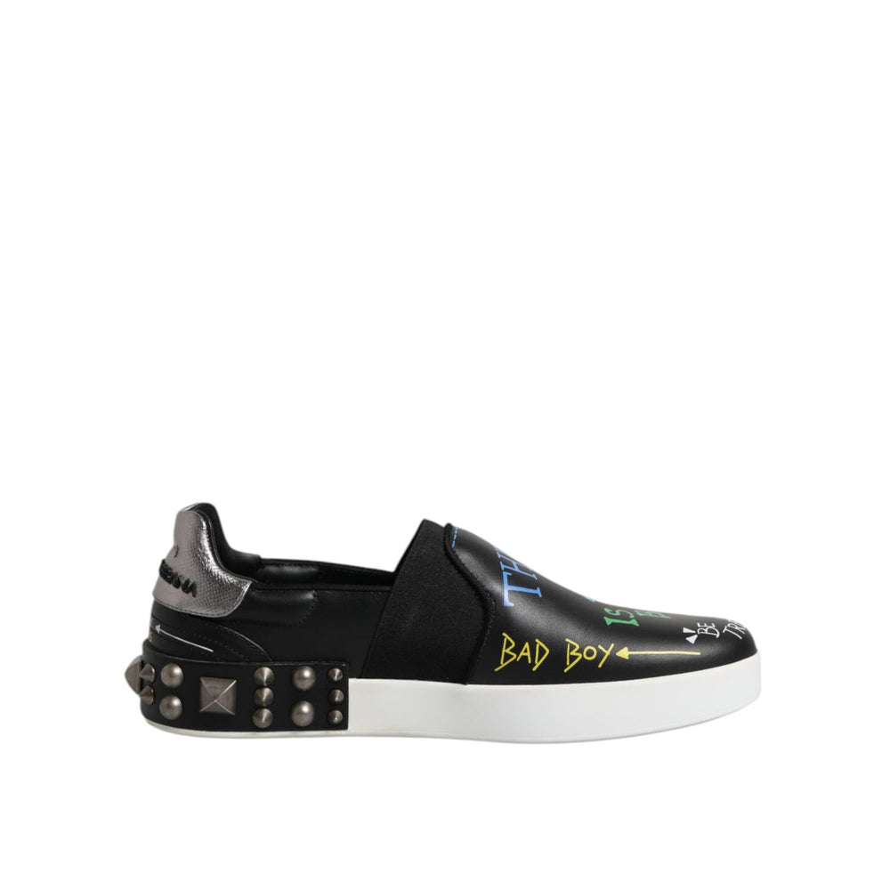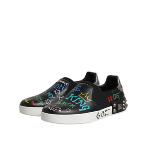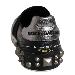 Dolce & Gabbana Black Leather Studded Graffiti Sneakers Shoes