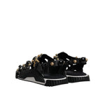 Dolce & Gabbana Black Leather Studded Slides Sandals Shoes
