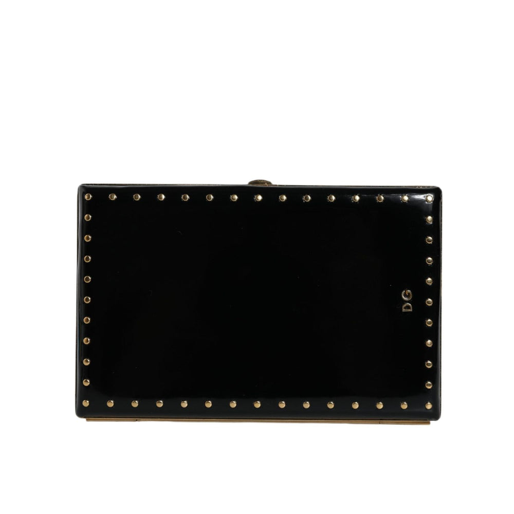 Dolce & Gabbana Black Leather Studs Gold Frame Clutch Evening Purse Bag