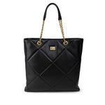Dolce & Gabbana Matelassé Black Leather Tote Bag. Two handles with gold chains, single compartment, snap button closure, internal pocket and zip pocket. Gold metal tag with logo applied on the front.