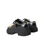 Dolce & Gabbana Black Leather Trekking Derby Embellished Shoes