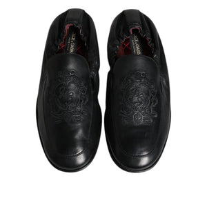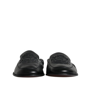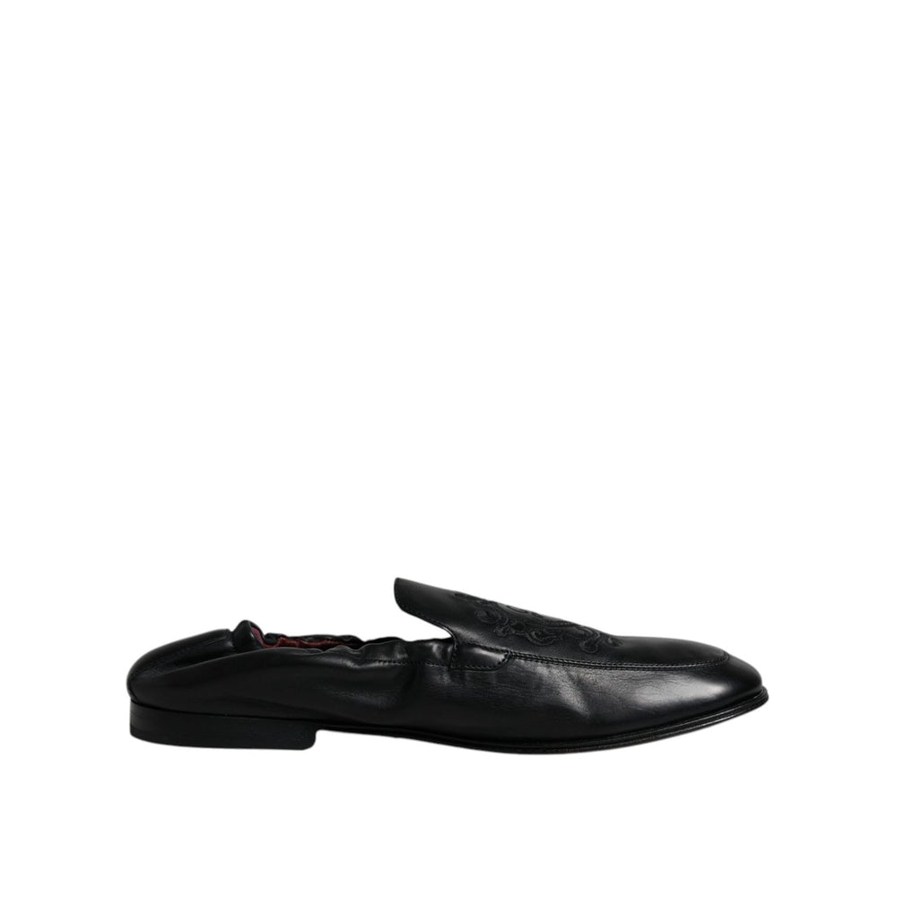 Dolce & Gabbana Black Logo Embroidered Leather Loafer Men Dress Shoes